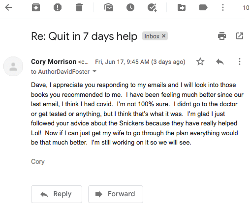 BTW, the author is really nice and answered every email I sent him. I wasn’t expecting that because I’m sure he gets a lot of emails every day. But he did, and his extra advice also really helped when I was going through the steps. I can defintely say I recommend this book if you have tried to quit smoking before but never had success with it.